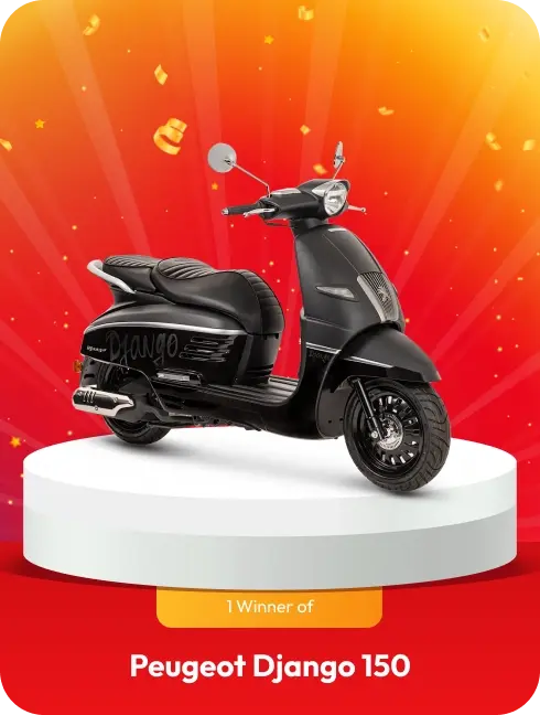 - 3 winners of a brand new Peugeot Django 150 Motorcycle